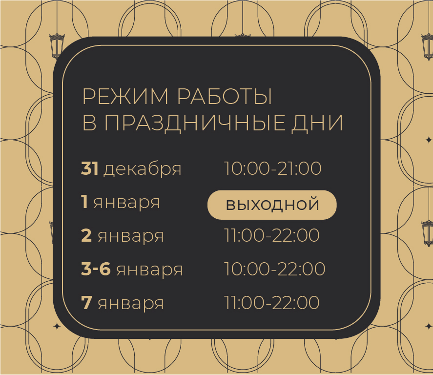 ← Назад Режим работы в праздничные дни! 29 декабря, 2025 Новогодние праздники уже близко — делимся графиком работы Большого Гостиного Двора 🎄 Планируйте свои покупки и подарки заранее🤍Ждём Вас в Большом Гостином Дворе!