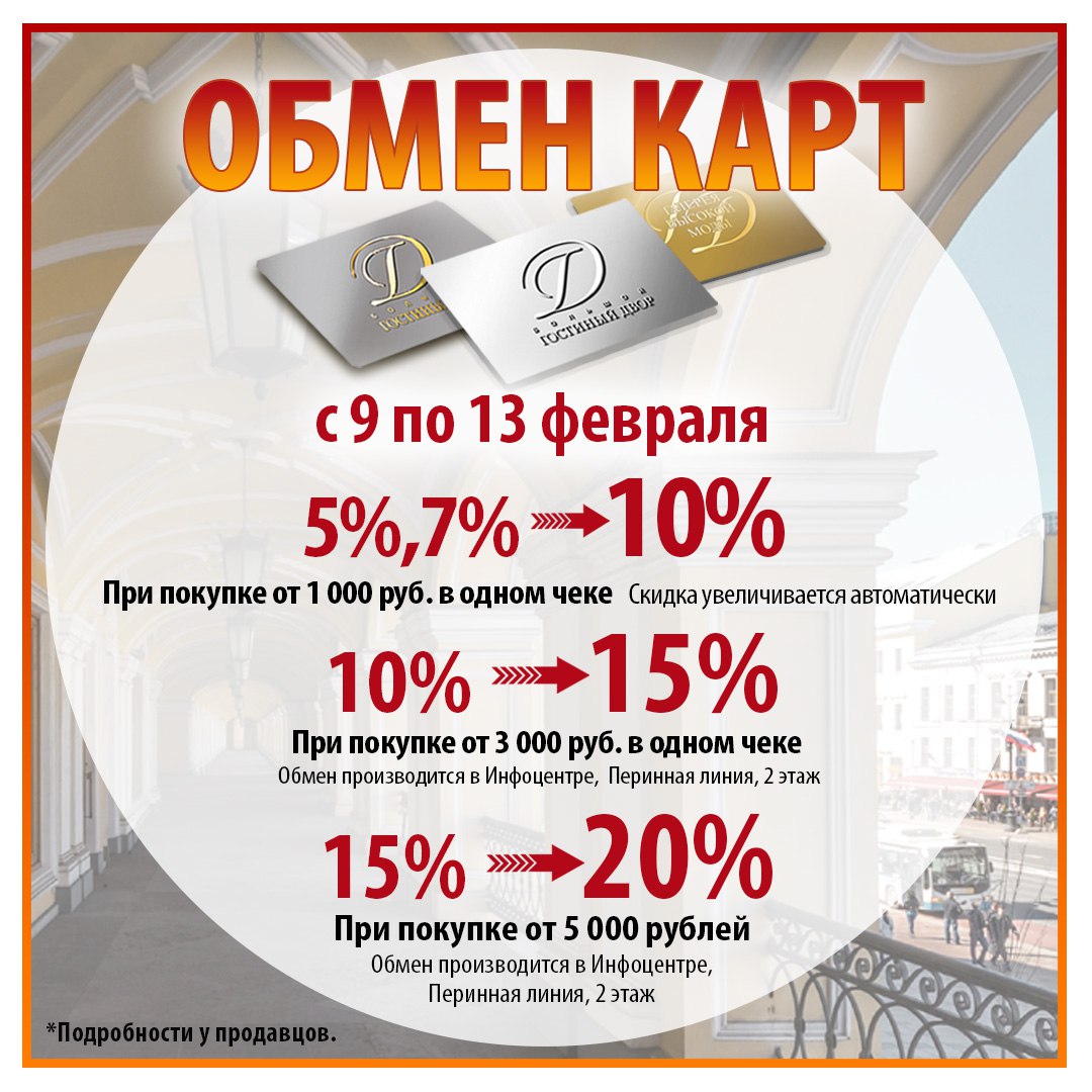 Перед наступающими праздниками мы делаем подарок нашим любимым покупателям! С 9 по 13 февраля Большой Гостиный Двор, проводит акцию Обмен карт.