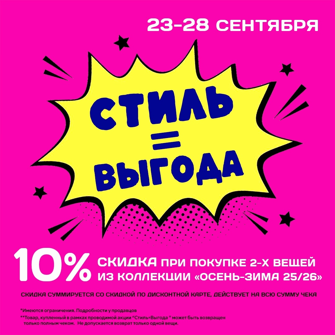С 23 по 28 сентября получите скидку 10% при покупке 2-х вещей из коллекции осень-зима 25/26!
