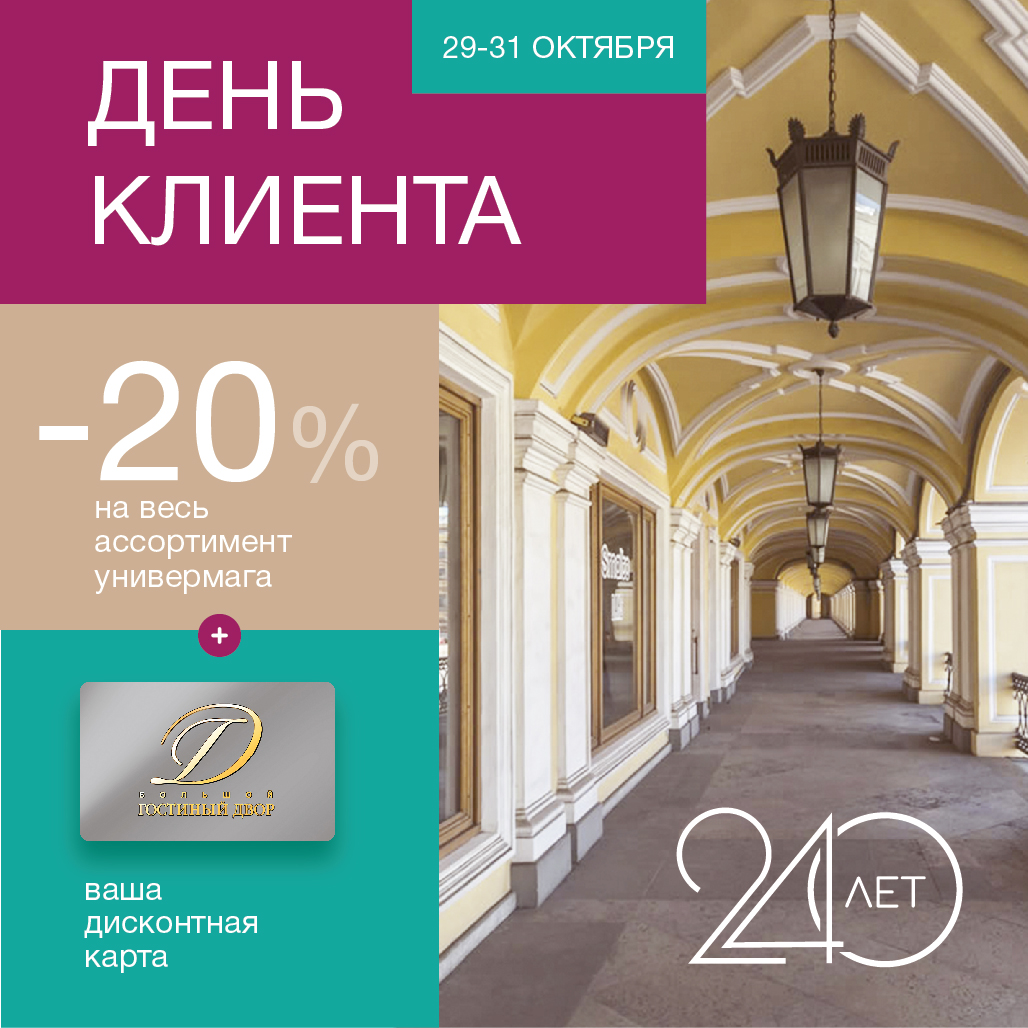 ← Назад День клиента в БГД! 28 октября, 2025 День клиента в БГД! С 29 по 31 октября дарим 20% скидку на весь ассортимент универмага. Ваша дисконтная карта суммируется с акцией. Подробности у консультантов.