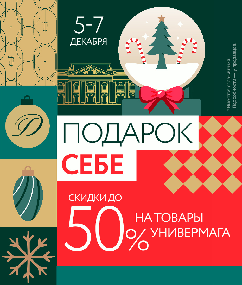 ← Назад Подарок себе! 05 декабря, 2025 🎁Акция «Подарок себе» в Большом Гостином Дворе! С 5 по 7 декабря - скидки до 50% на товары Универмага!Порадуйте себя в декабре! Большой Гостиный Двор - у нас волшебно💫